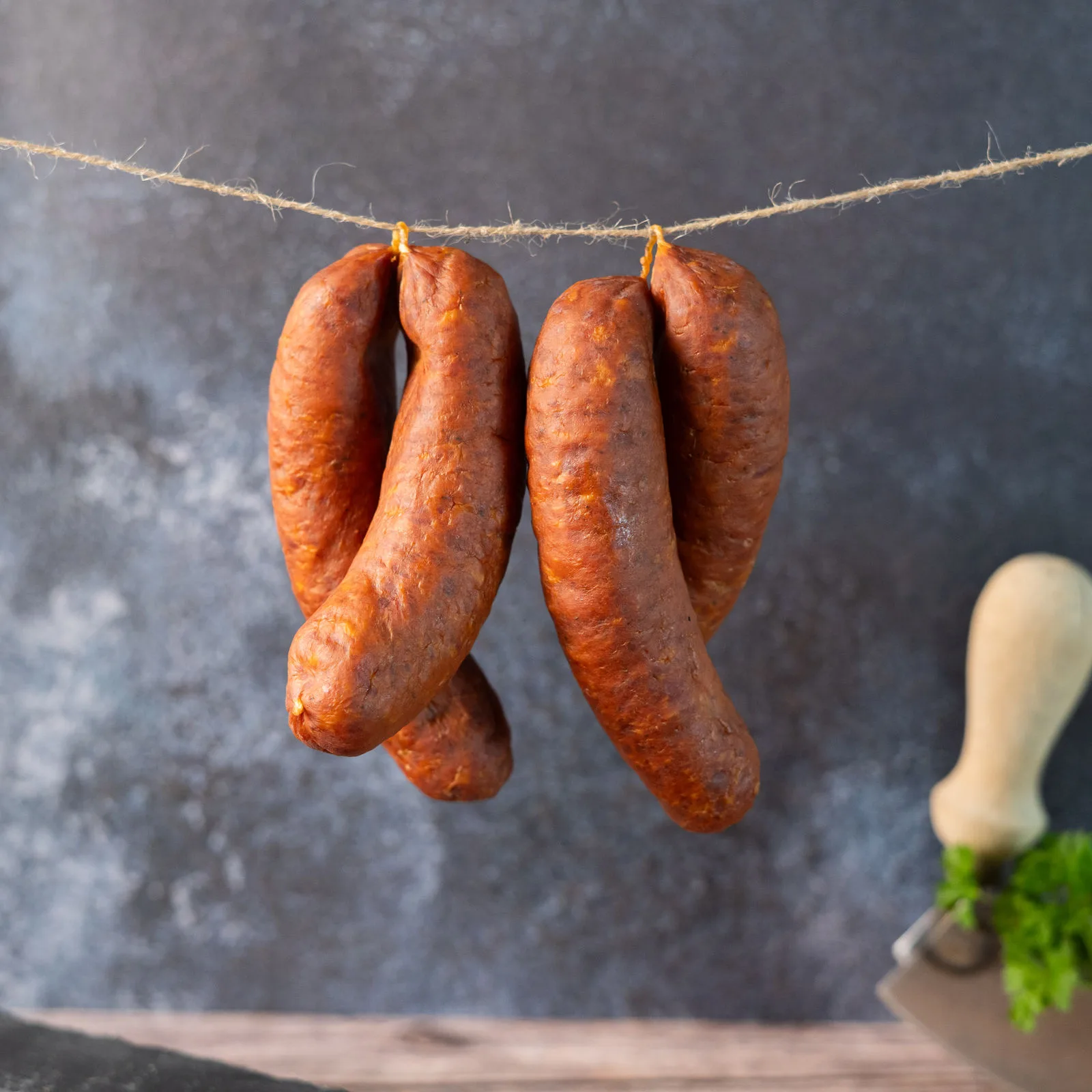 Bei der luftgetrockneten Rohwurst bitte bei Empfang die Wurst aus der Folie nehmen und an einem luftigen Ort aufhängen.